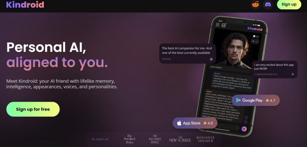 From our testing, Kindroid AI stands out for how much control you get over your AI companion’s personality, tone, and behavior. It feels more like building a consistent character rather than chatting with a generic bot. Conversations stay relatively stable over time, and the memory system is decent, especially on the paid plan.